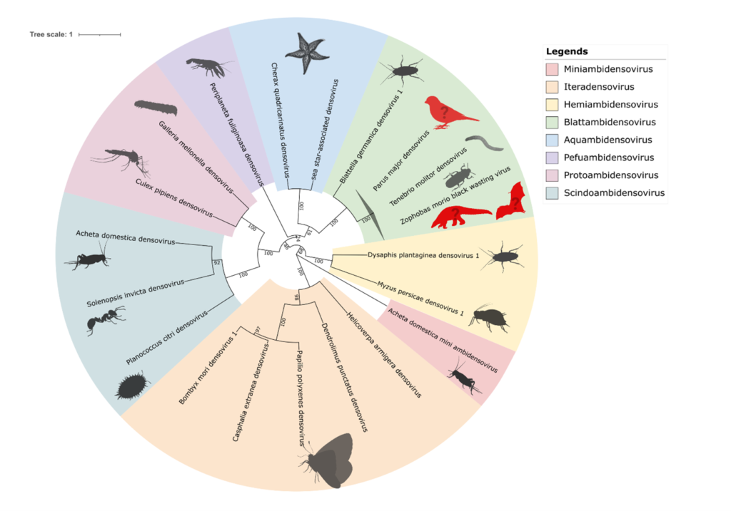 Figure: Phylogenetic classification of metagenomically classified densoviruses as Tenebrio molitor densovirus.